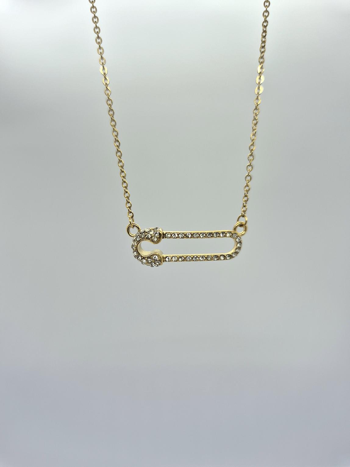 A bold necklace inspired by the safety pin form.